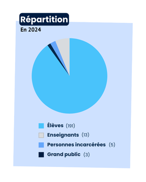 Nous intervenons dans les classes des élèves du CM2 à la Terminale. Parmi nos interventions, nous accordons une attention particulière aux quartiers prioritaires (REP/REP+), afin de promouvoir l’égalité des chances et de garantir à tous les jeunes un accès équitable à l’éducation citoyenne.